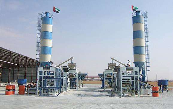 阿聯酋兩條QT10-15水泥制磚機生產線,現場生產空心砌塊
